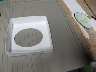 Step 4: Using a cutting template (or tracing around the opening of the tissue box), cut an oval shape from the center of the 6 9/16" piece.